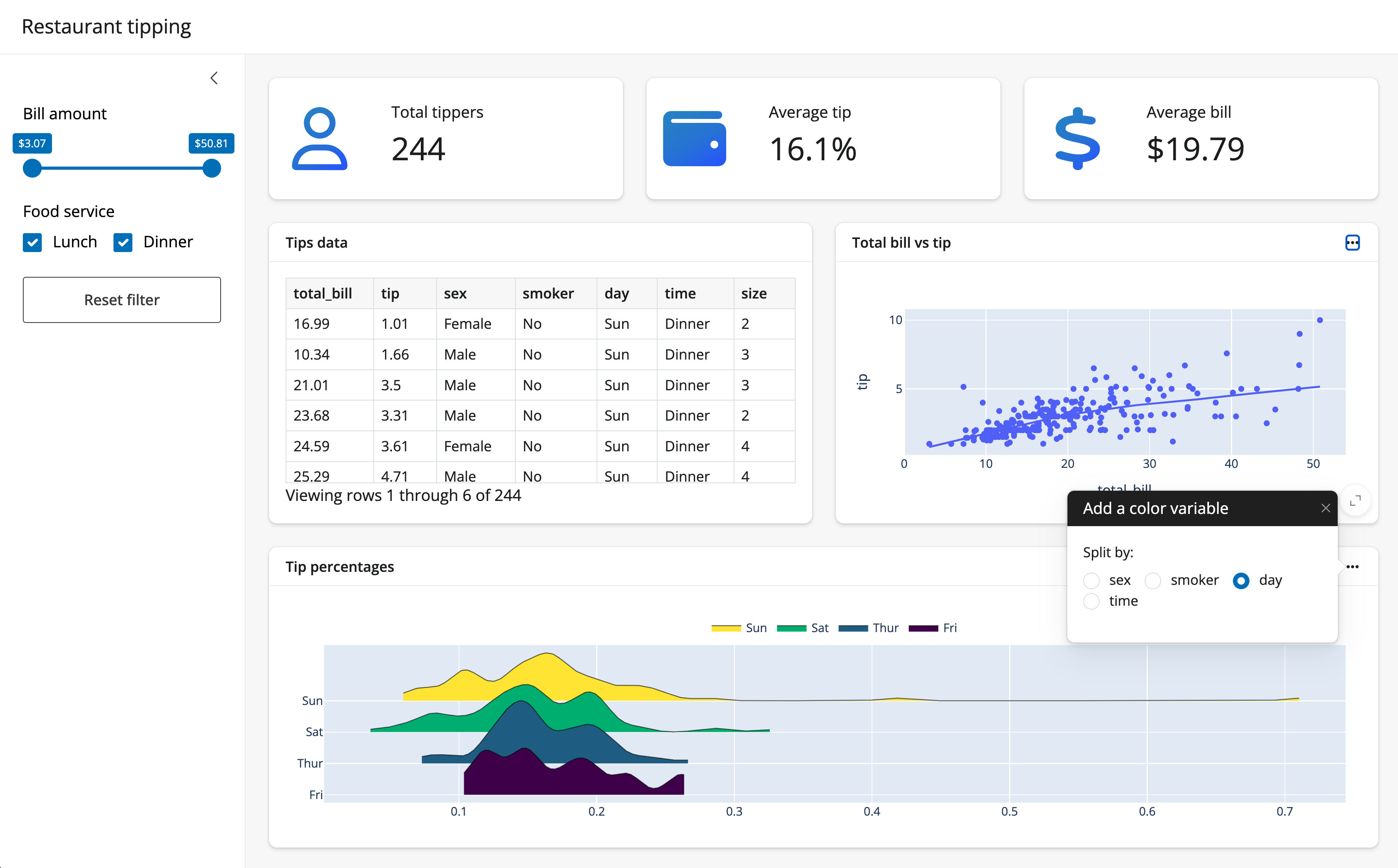 Restaurant tips dashboard